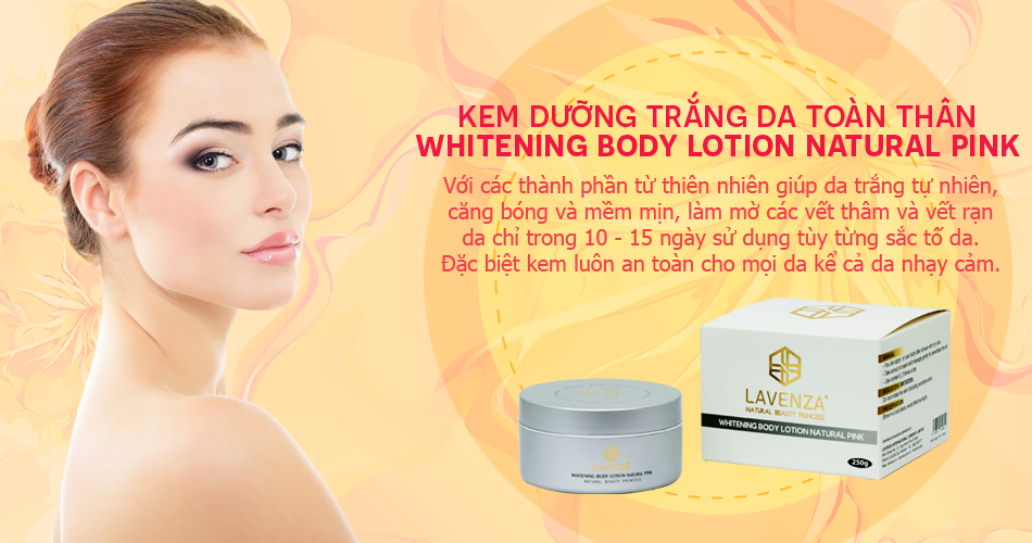 Một làn da ngăm đen luôn khiến nhiều bạn nữ tự ti trong mọi hoạt động giao tiếp thường ngày của mình. Một làn da trắng mịn, không tì vết đó là niềm khát khao của chị em phụ nữ chúng ta. Biết được điều đó, Mỹ phẩm Lavenza cho ra đời dòng sản phẩm mới kem dưỡng trắng da toàn thân Whitening Body Lotion Natural Pink mong muốn mang lại vẻ đẹp không tì vết cho chị em một cách an toàn và hiệu quả nhất.