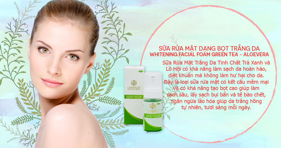Bạn có biết trà xanh và lô hội là hai thần dược làm đẹp số 1 của làn da. Trong khi lô hội giúp làn da của bạn trở nên mịn màng, hồng hào, khỏe mạnh thì trà xanh lại là một thần dược trị mụn hiệu quả, tích hợp chung với nano Collagen và Vitamin C nguyên chất, giúp làm sạch các lỗ chân lông loại bỏ nhanh các mảng bám và tế bào chết trên da, làm se lại các vùng da bị dị ứng hoặc sưng mọng do mụn. Với sự kết hợp tuyệt vời như vậy, Lavenza chắc chắn rằng đây sẽ là một loại sữa rửa mặt tốt nhất dành cho làn da nhạy cảm của bạn.
